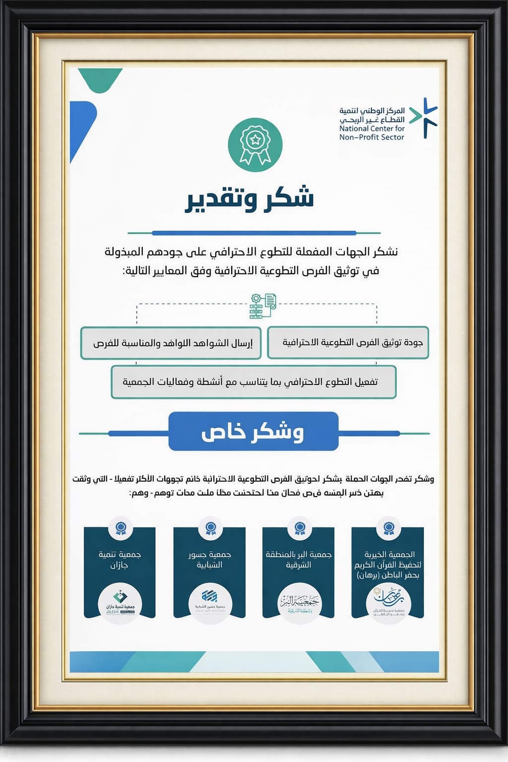 حصول الجمعية على المركز الاول في التطوع الاحترافي والرابع على مستوى المملكة